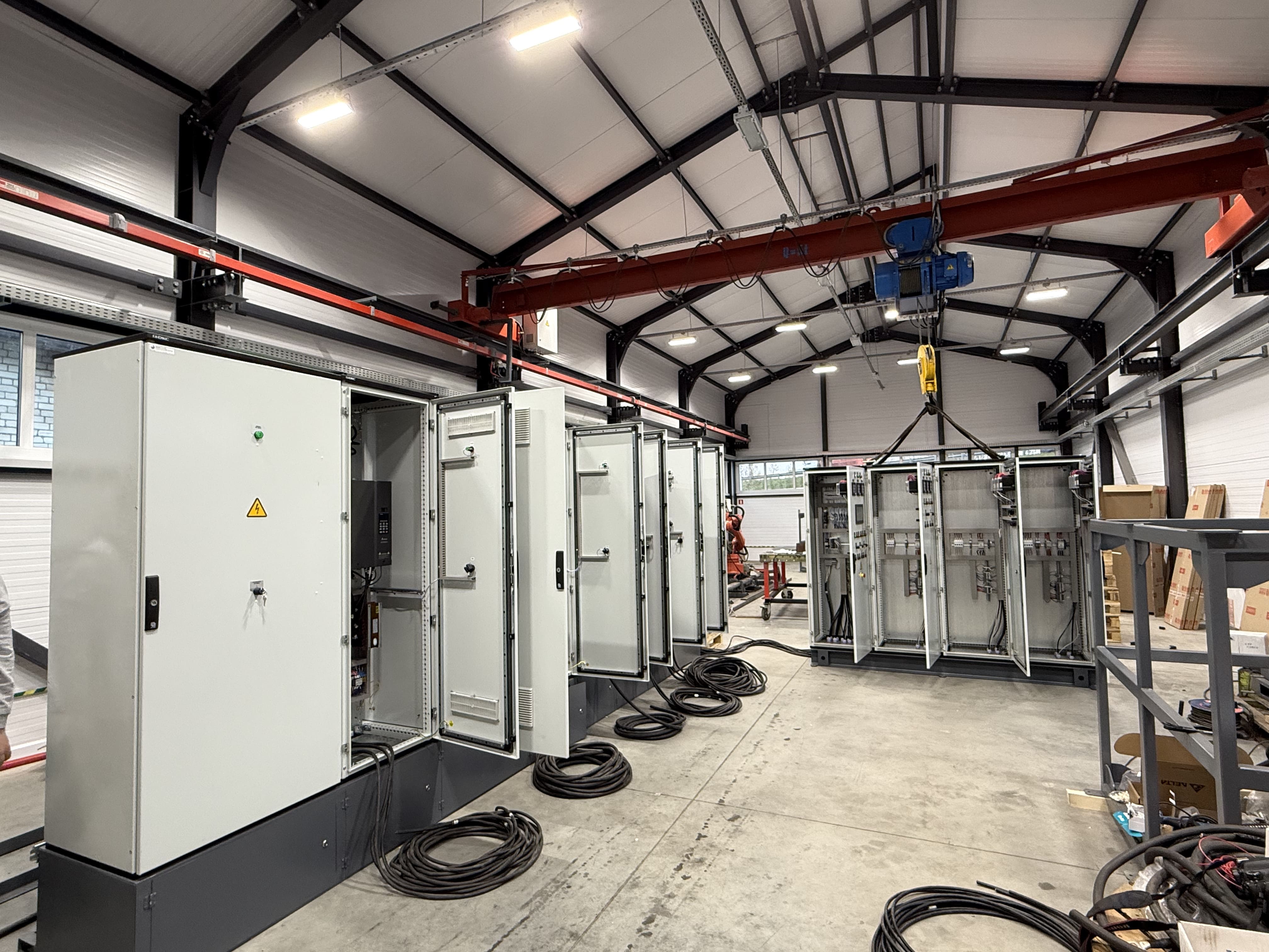 В шкафах располагаются, как устройства, обеспечивающие питание испытуемых двигателей, так и устройства системы управления установкой. Рабочее место оператора укомплектовано измерительными приборами.